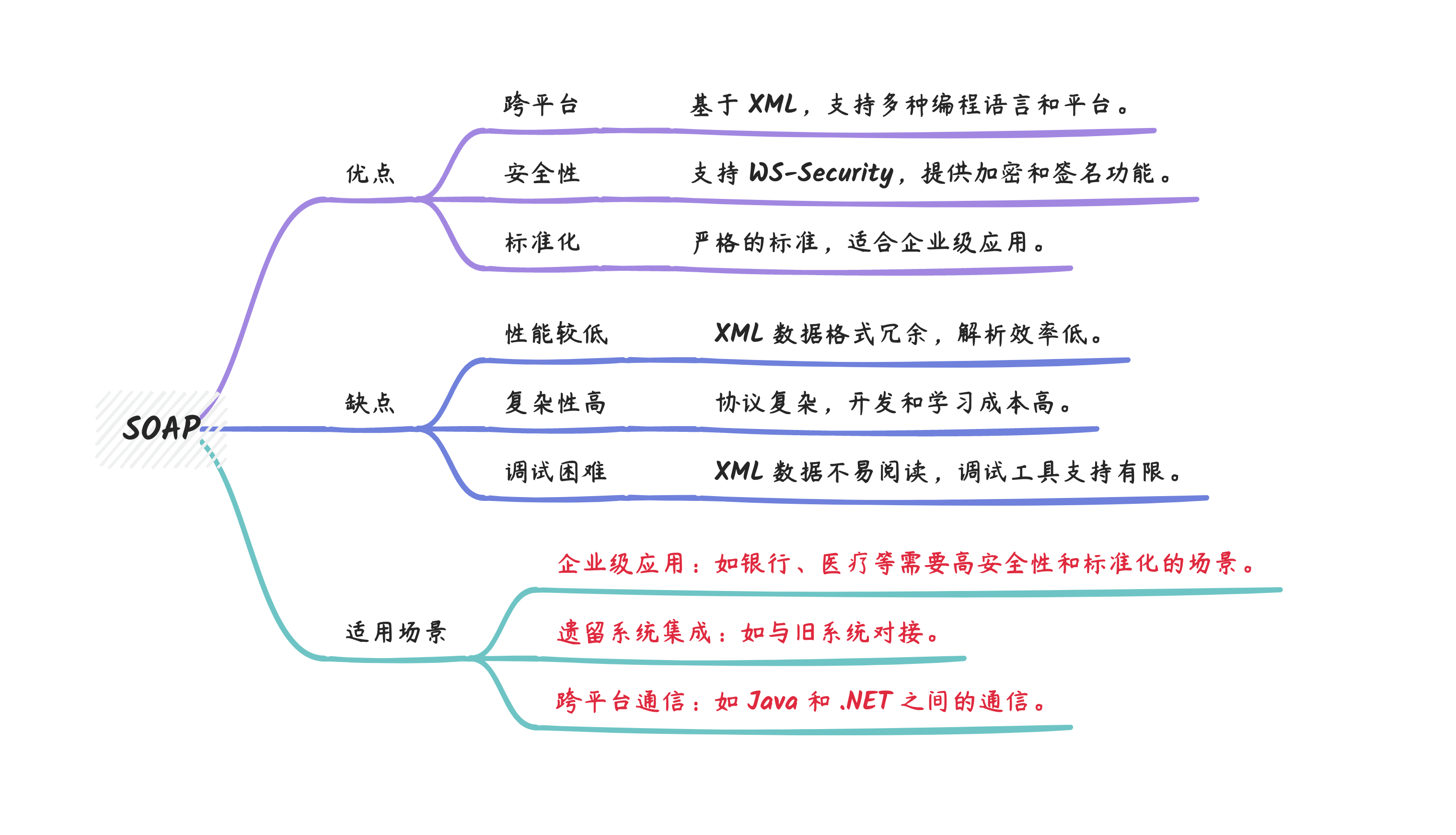 SOAP(Simple Object Access Protocol)是一种基于 XML 的协议,用于在分布式环境中交换结构化信息。它通常与 WSDL(Web Services Description Language)结合使用,描述服务的接口和数据格式。