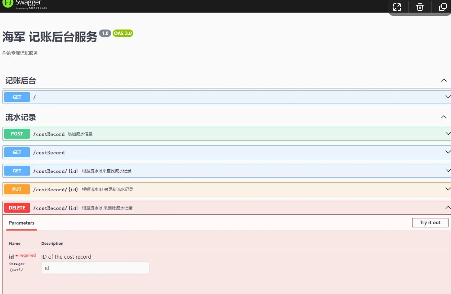 @ApiOperation({ summary: '添加流水信息', tags: ['Cost Records'] }) // 添加 API 操作的摘要