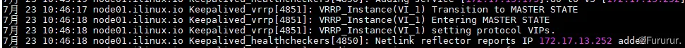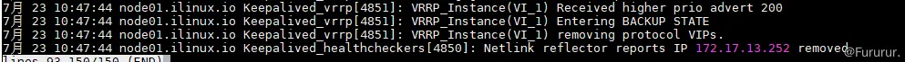 如果此时,手动停止 MASTER 上的 Keepalived,模拟 LB MASTER 节点挂了,VIP 会自动飘到 BACKUP LB 上。