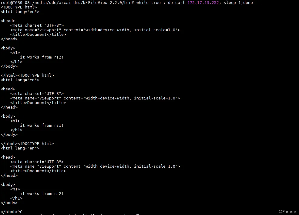 [root@localhost ~]# while true ; do curl 172.17.13.252; sleep 1;done