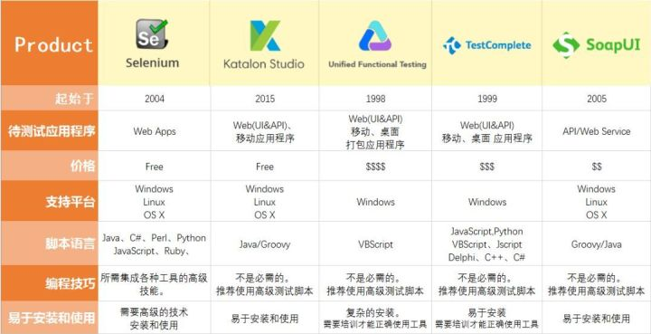 2.2、 Selenium Selenium主要是进行Web自动化测试,同时在手机APP自动化测试中,有一些测试框架也是基于Selenium来实现。如果要进行Web自动化测试,学习selenium是不二之选。 优点