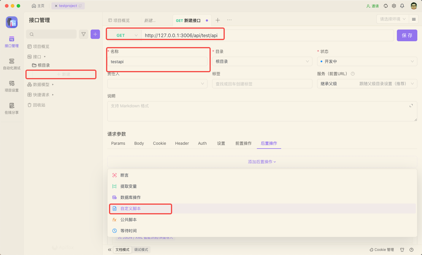 在填入 路径、方法、名称 之后,我们需要进行 自定义脚本 的编写。