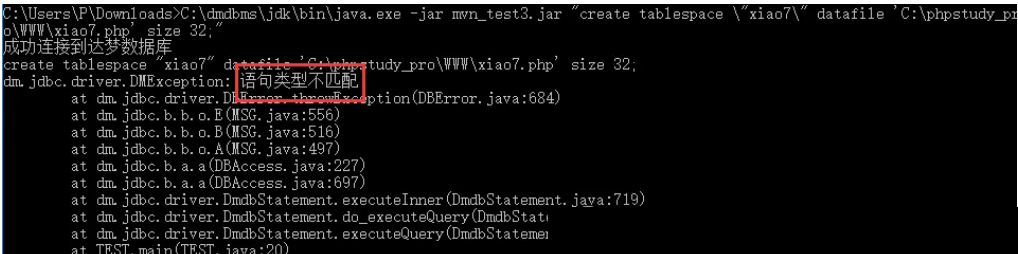 本以为通过这种方式就可以在存在SQL注入漏洞的点通过自定义命名空间来达到任意文件写入的效果,但在实际的环境中遇到了报错“语句类型不匹配”。