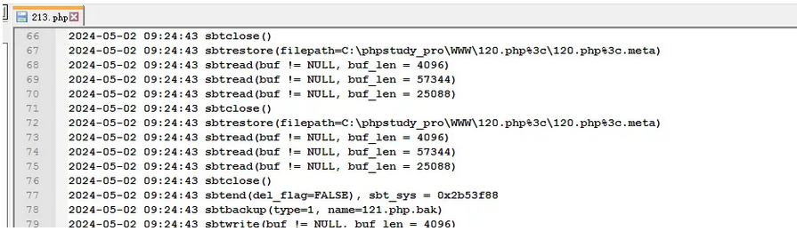 C:\phpstudy_pro\WWW\213.php文件中保存了备份过程日志信息,虽然文件名可以自定义,但是内容并不能任意控制,导致并不能通过TRACE FILE来getshell。