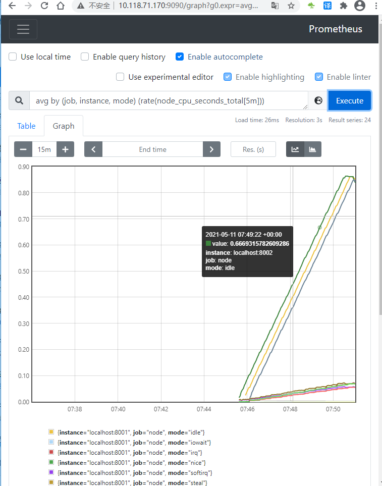 使用 Prometheus 内置的expressin browser访问 localhost:9090/graph