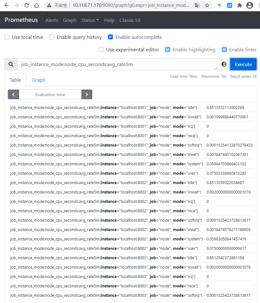 现在,要将由该表达式产生的时间序列记录到一个名为:job_instance_mode:node_cpu_seconds:avg_rate5m