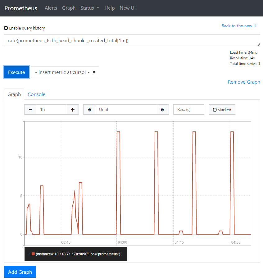 例如,输入以下表达式以绘制在自采样的 Prometheus 中每秒创建 chunk 的速率:
