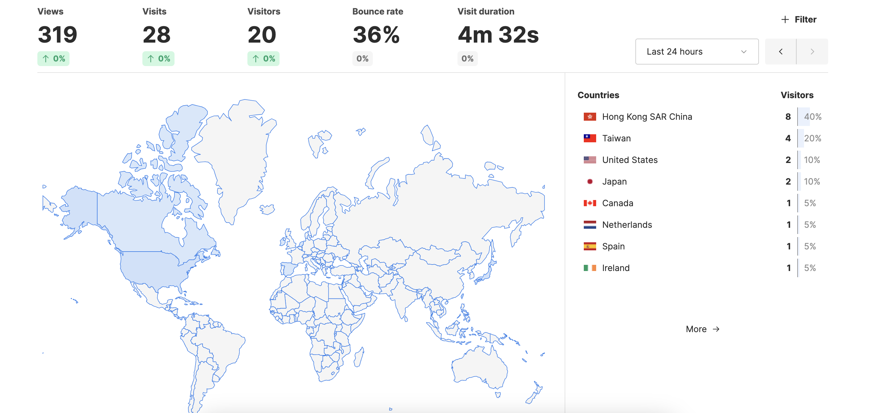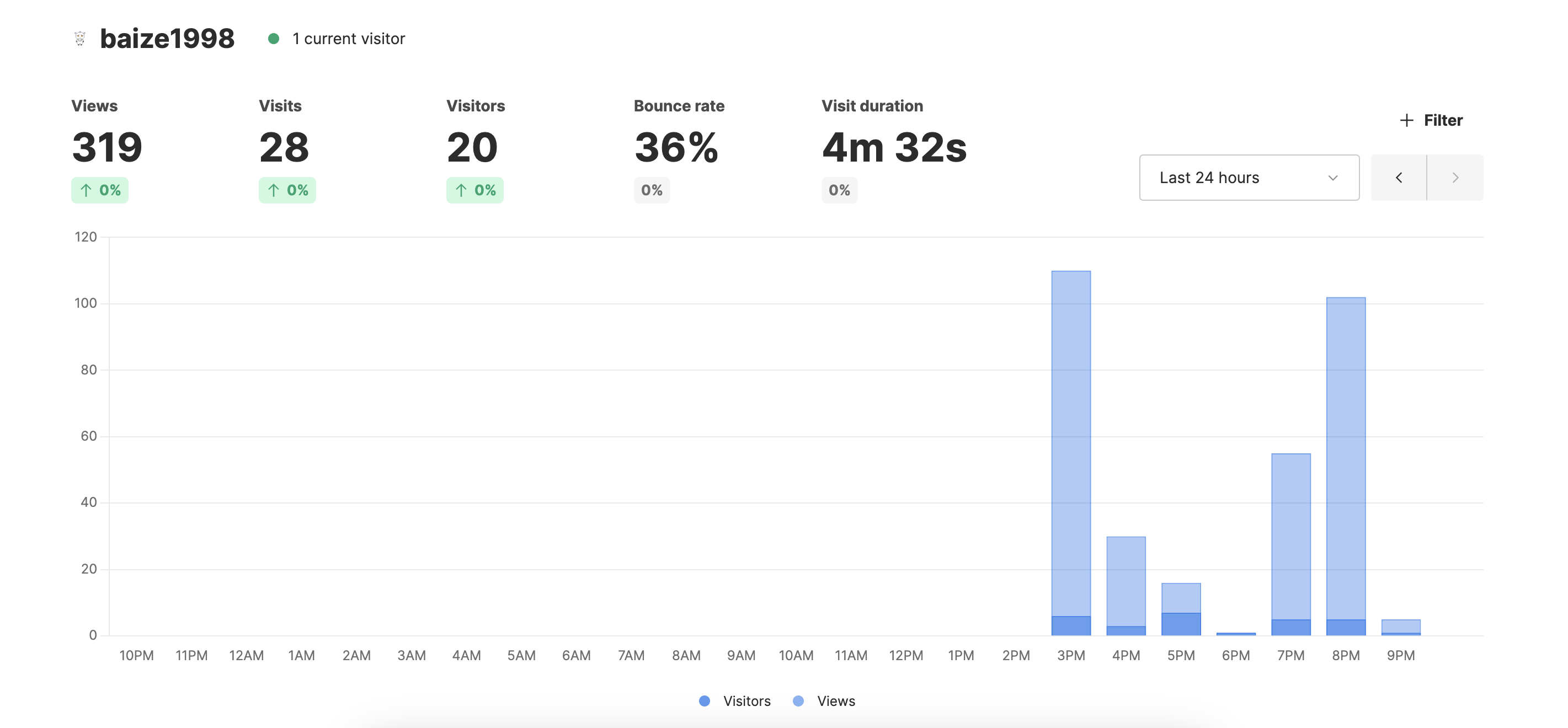 至此你的站点在被访问的时候,会向部署的 vercel 的 umami 上报数据,任何人都可以跳转看到统计数据。