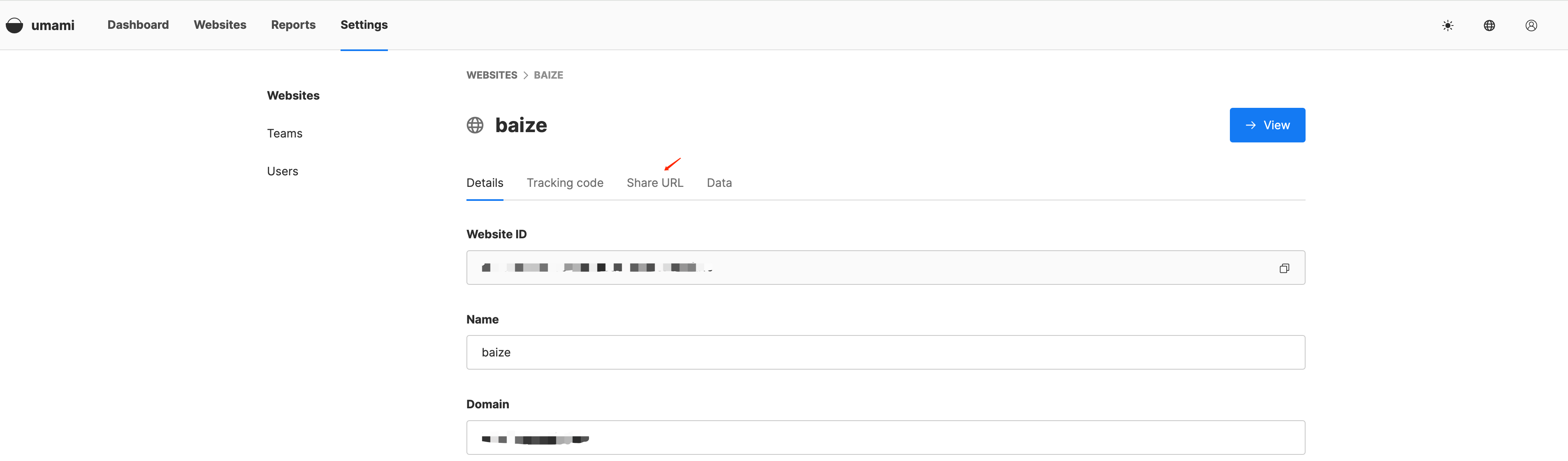 完成基础帐号配置后,点击侧边栏网站 Tab,点击添加网站。填写网站基本信息,可以勾选 enable share URL