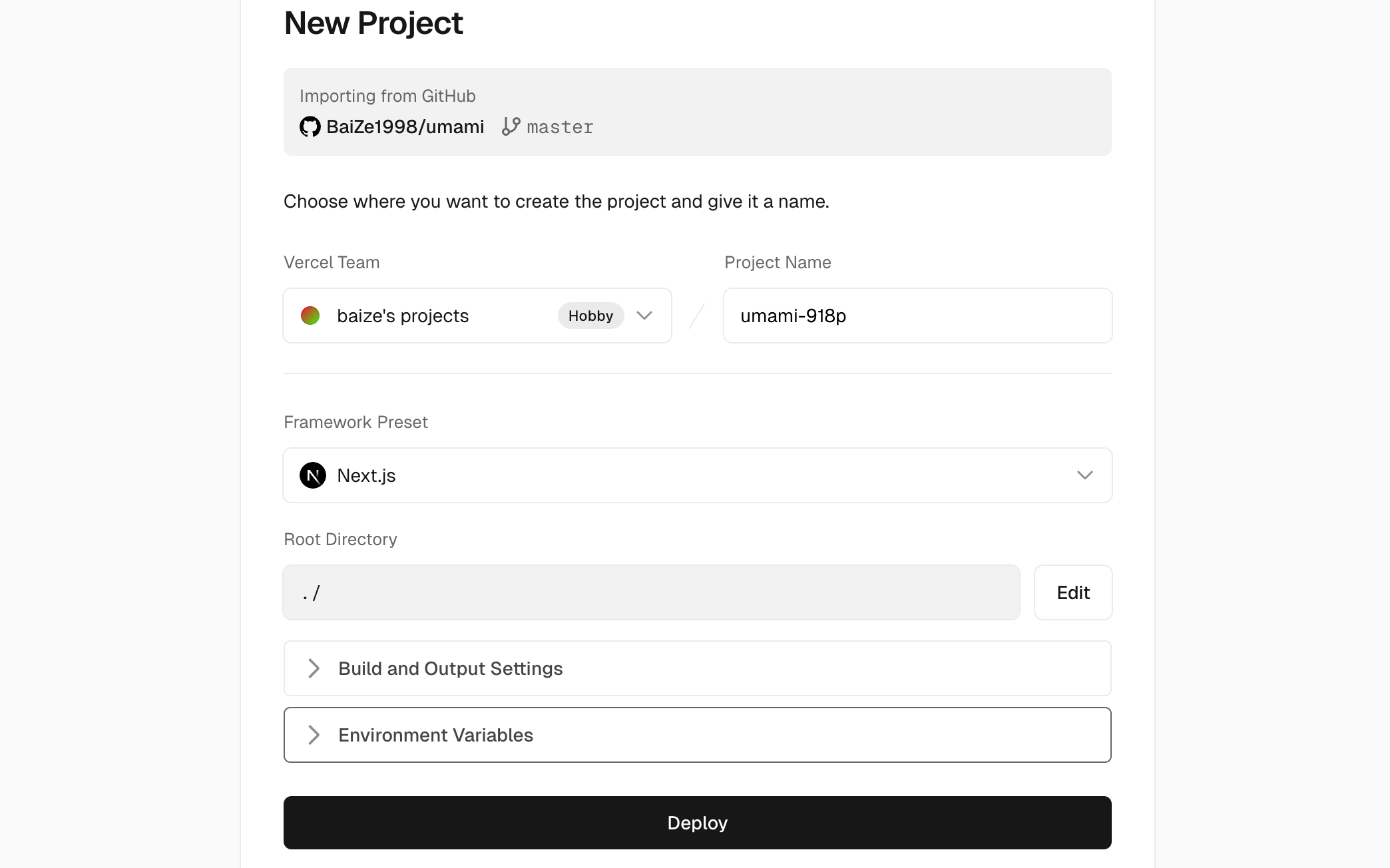 在 vercel 部署完成 umami 后会得到一个 <deploy-id>.vercel.app