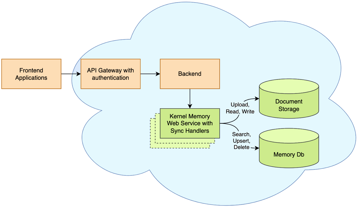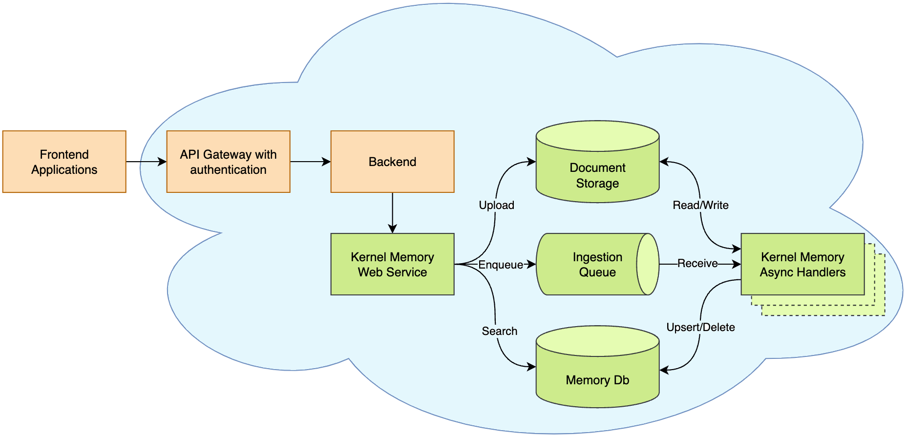 如果你的场景是想要搭建大规模的文档识别跟问答平台那么你可能需要把 KM 作为一个完整的服务,异步来处理这些文档与问答请求。这种模式叫做Memory as a Service - Asynchronous API