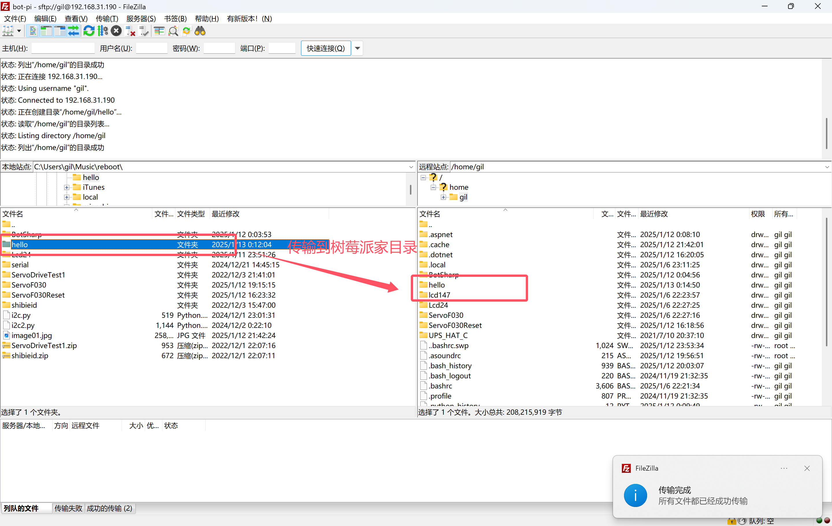 - 发布完的程序传输到树莓派。