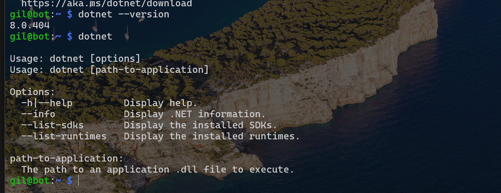 DOTNET_FILE=dotnet-sdk-8.0.404-linux-arm64.tar.gz export DOTNET_ROOT=$(pwd)/.dotnet mkdir -p "$DOTNET_ROOT" && tar zxf "$DOTNET_FILE" -C "$DOTNET_ROOT" export PATH=$PATH:$DOTNET_ROOT:$DOTNET_ROOT/tools