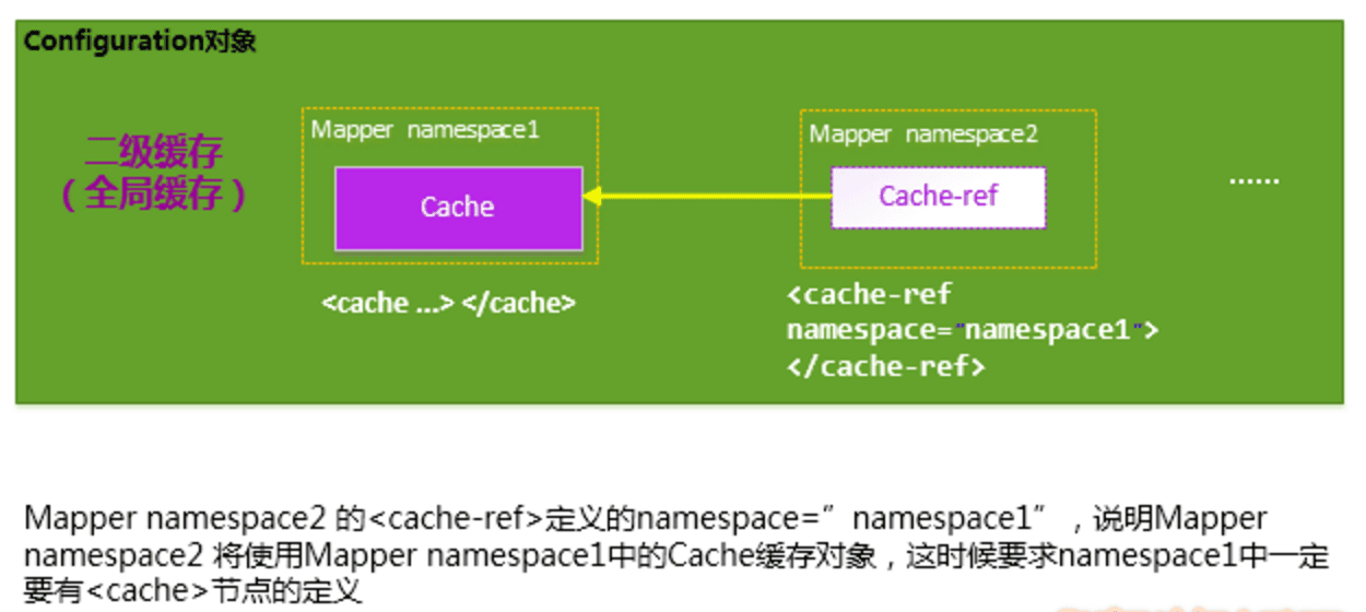 如果你想让多个Mapper公用一个Cache的话,你可以使用<cache-ref namespace="">