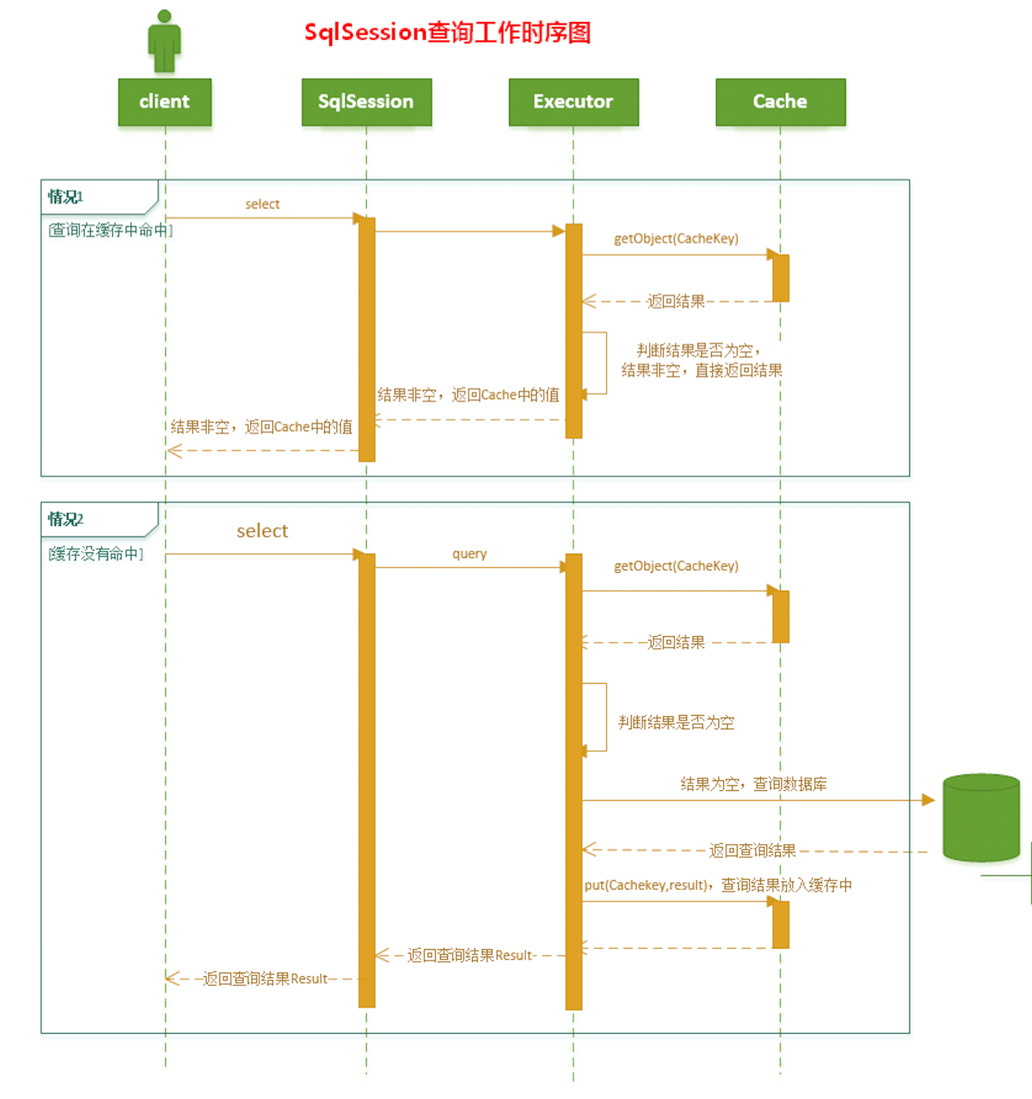 请注意,如果你的MyBatis使用了二级缓存,并且你的Mapper和select语句也配置使用了二级缓存,那么在执行select查询的时候,MyBatis会先从二级缓存中取输入,其次才是一级缓存,即MyBatis查询数据的顺序是:二级缓存 ———> 一级缓存 ——> 数据库。