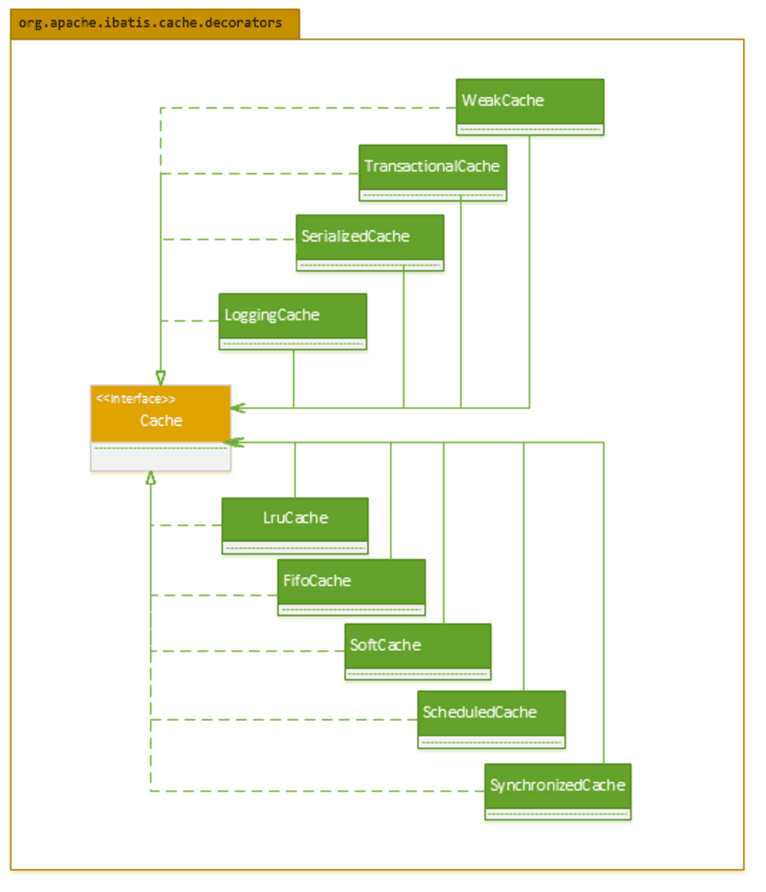 MyBatis定义了大量的Cache的装饰器来增强Cache缓存的功能,如下类图所示。