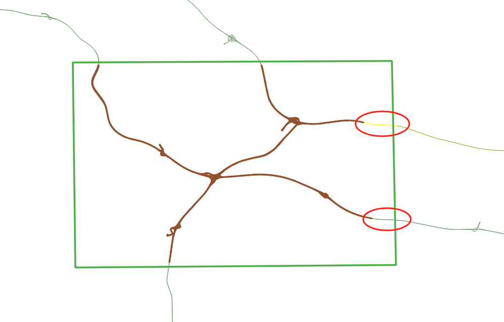 3、使用ST_Covers,求出所有完全包含在面内的线,有一部分线是被多边形穿过了,此部分线是没有在covers里的
