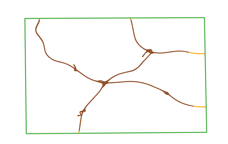 4、获取多边形边界(ST_Boundary)和polyline的相交的线(ST_Intersects),并用边界分割(ST_Split)这些线,此时结果为GEOMETRYCOLLECTION,需要提取(ST_Dump)几何图形组件的集合(GEOMETRYCOLLECTION)中的图形,涉及到的函数如下: