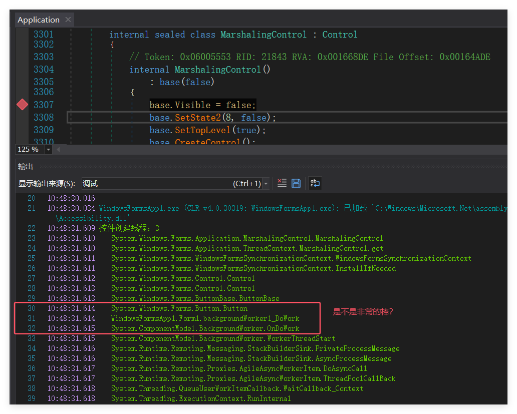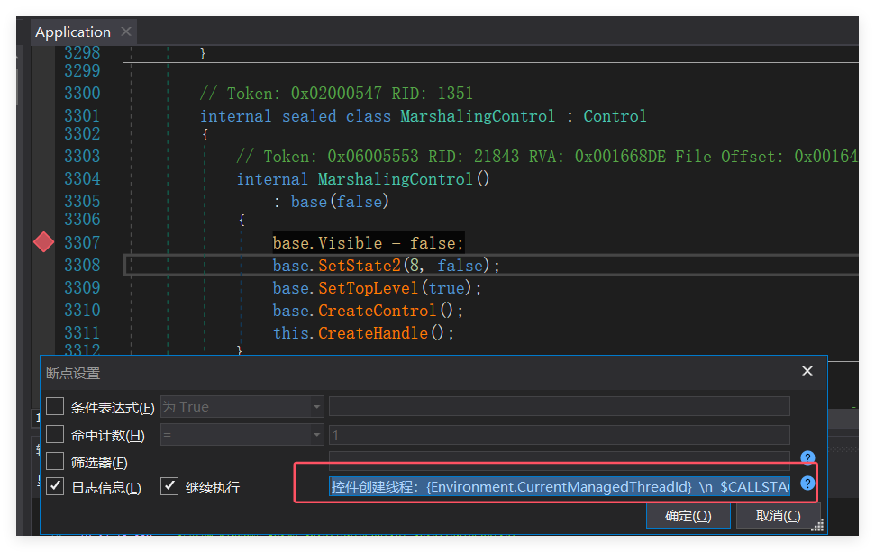 第一种方式是启动 windbg 对 System_Windows_Forms_ni System.Windows.Forms.Application+MarshalingControl..ctor