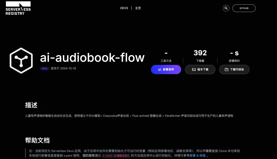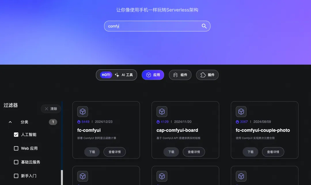 在此基础上,Serverless Devs 根据 AI 应用的实际开发需求,还额外提供了工作流、AI 工具的相关模版。