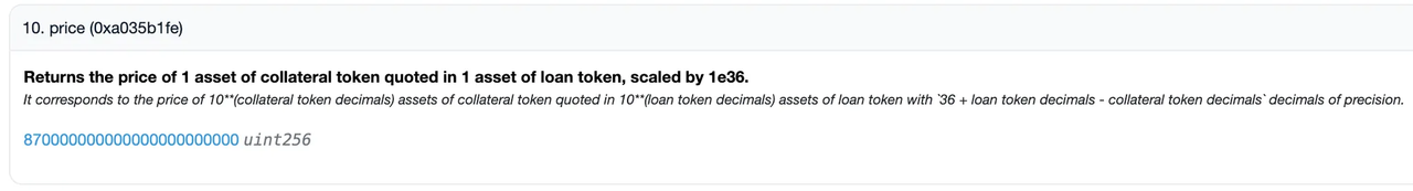 在 20240724 创建的市场 0xb48b 中,采用的是固定价格预言机,也就是说 USD0++ / USDC 的价格是一个常量 1,不会波动不会变。这下子用户终于可以放心大胆地进行循环贷了!