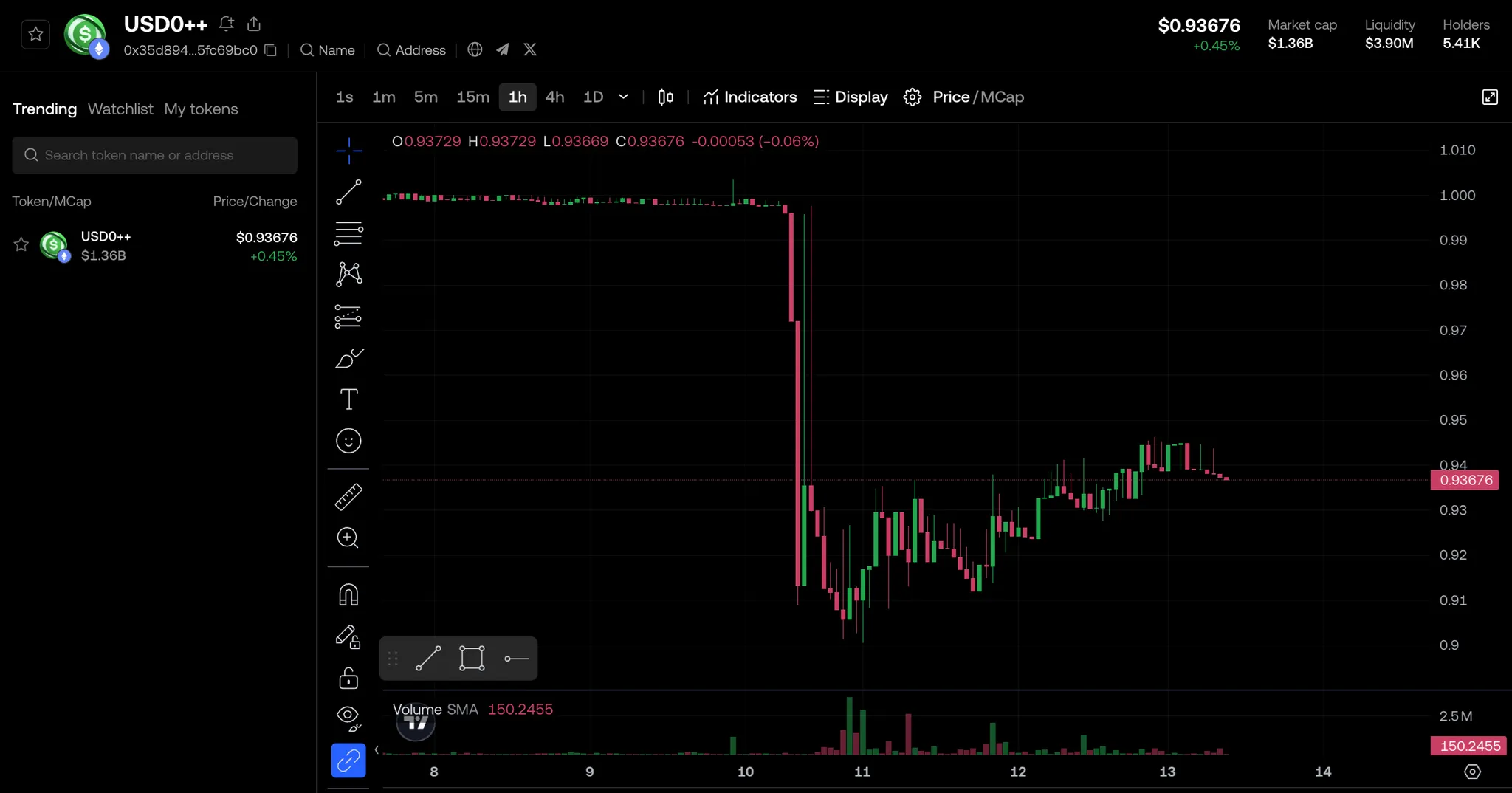 由于在 Usual 团队发出公告后 USD0++ 的价格从 1 下跌到最低 0.9,这使得 Morpho USD0++ / USDC 市场的流动性大量撤出。