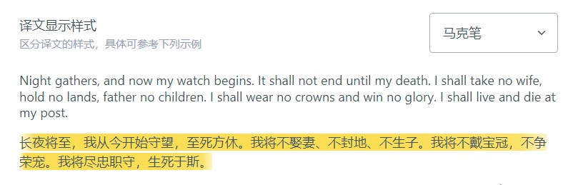 在设置里面,还支持了非常多的“译文显示样式”: