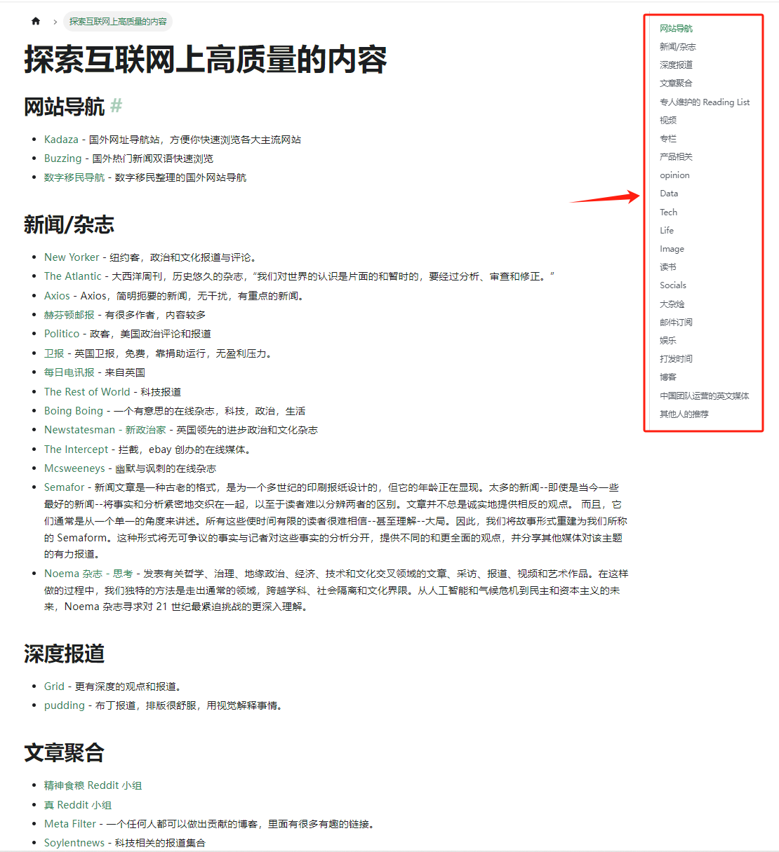 另外,在使用说明里面,我还看到了他们整理的“一个高质量的英文网站列表”: