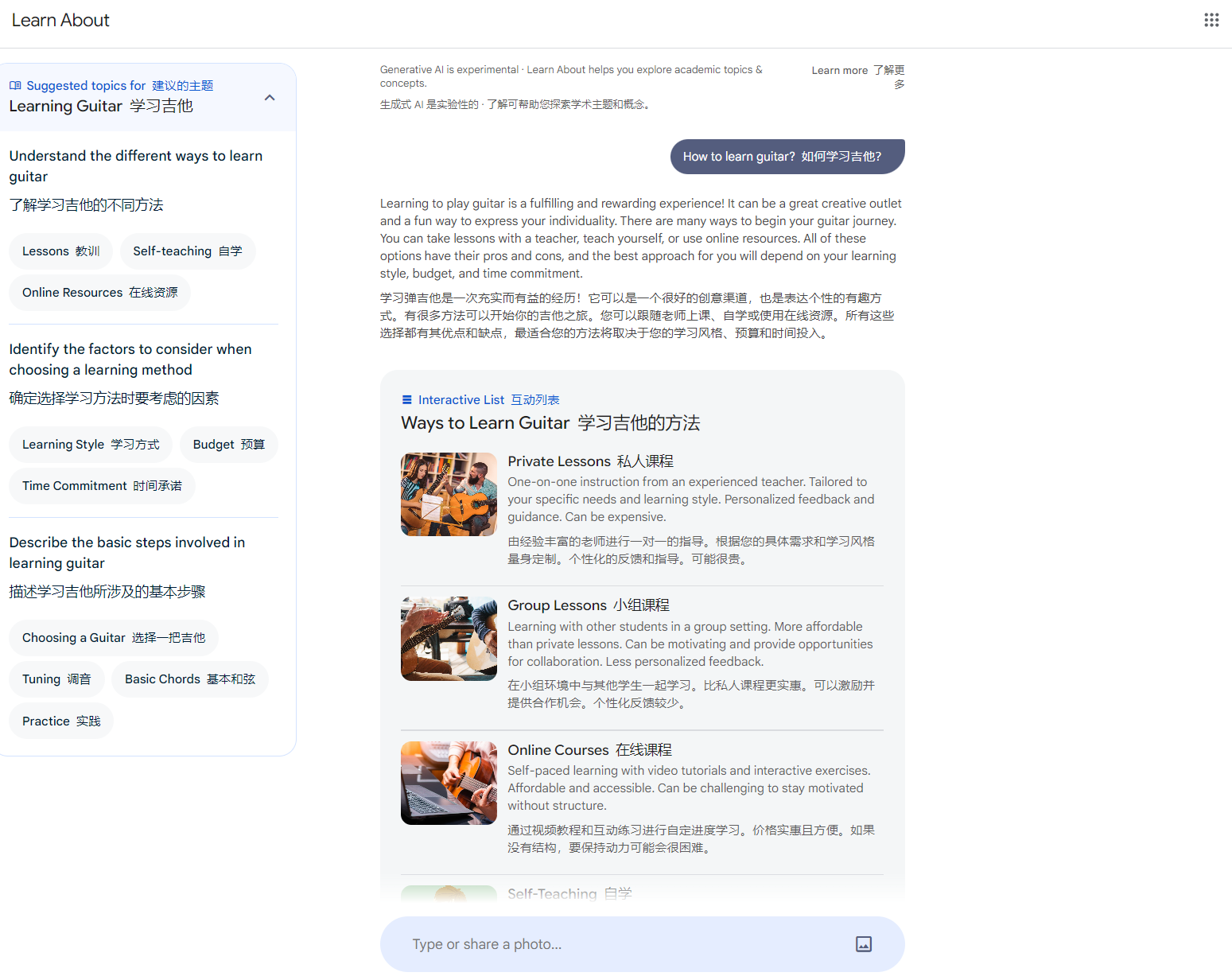 那我在这里就输入:How to learn guitar?(如何学习吉他)