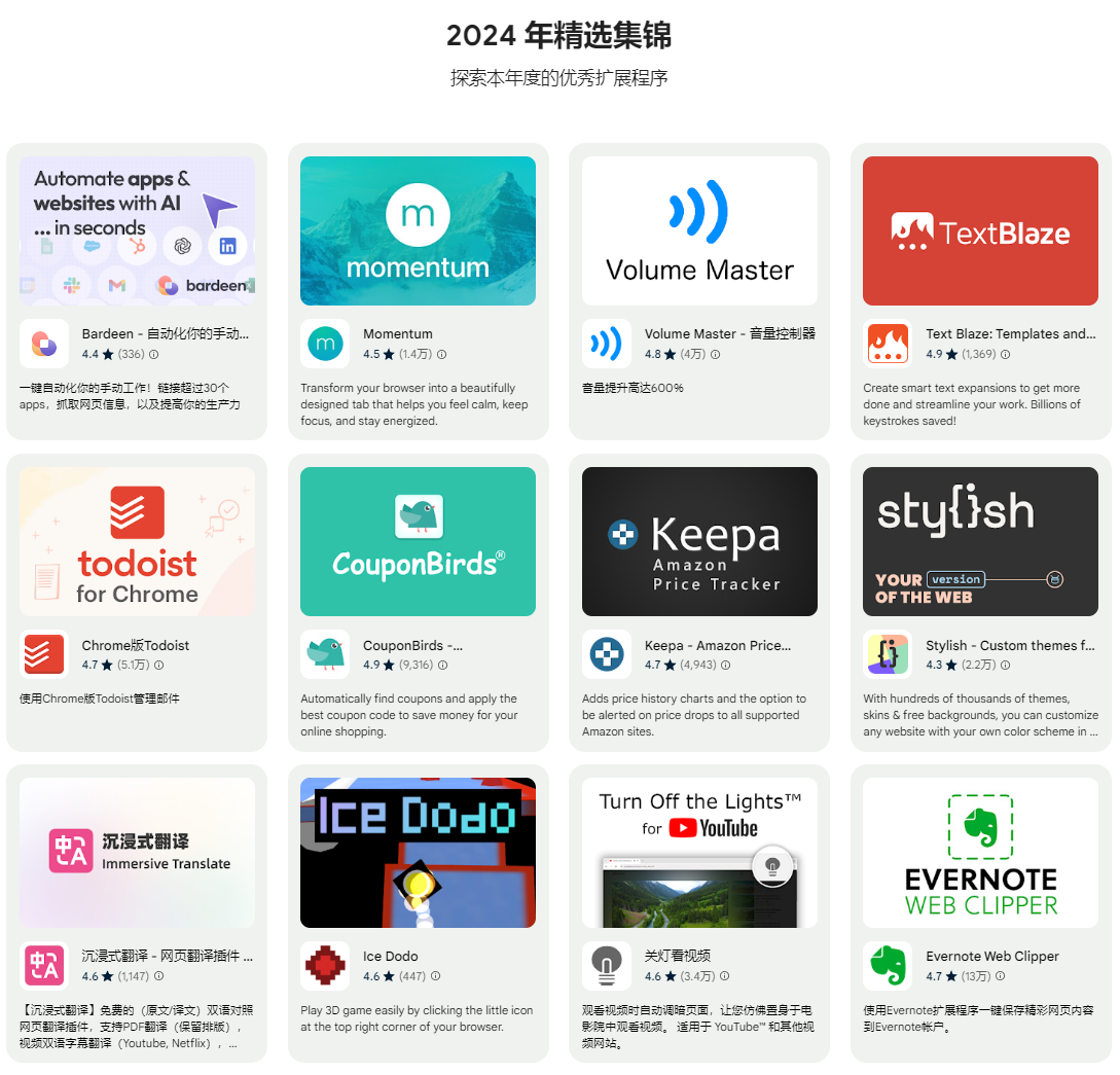 前段时间看到 Google 发布了 2024 年度 Chrome 浏览器插件: