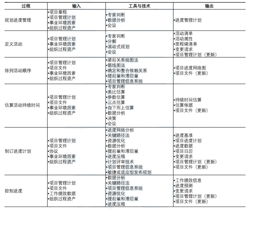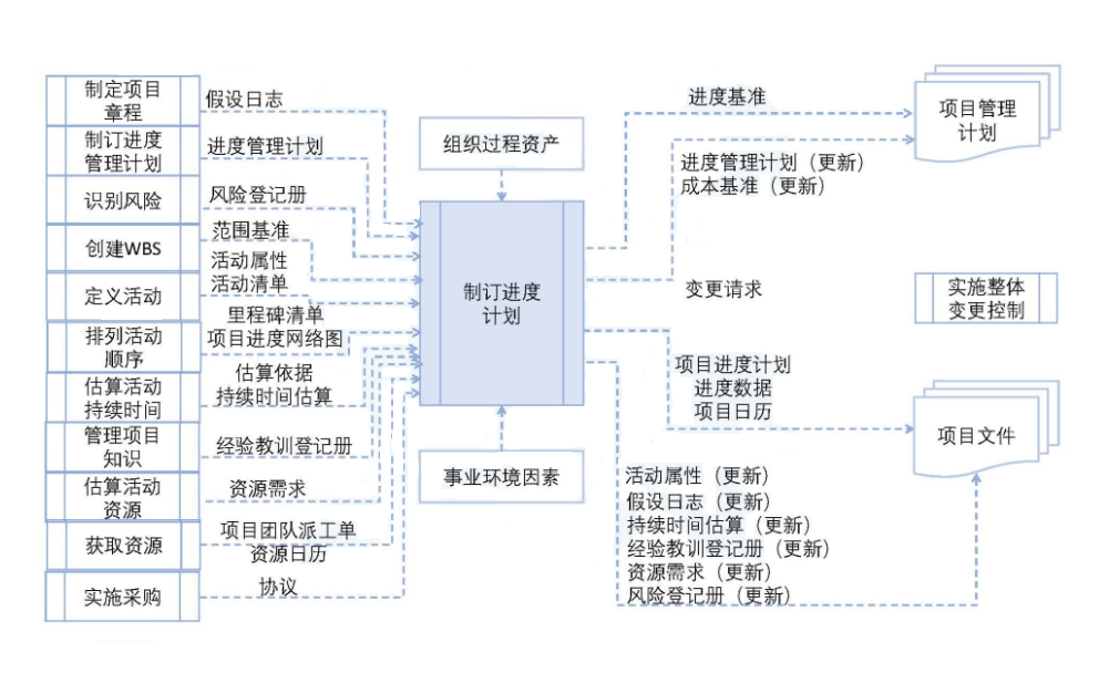 - 进度基准:在项目范围、活动资源或活动持续时间估算等方面的变更获得批准后,可能需要对进度基准做相应变更。另外,因进度压缩技术或绩效问题造成变更时,也可能需要更新进度基准