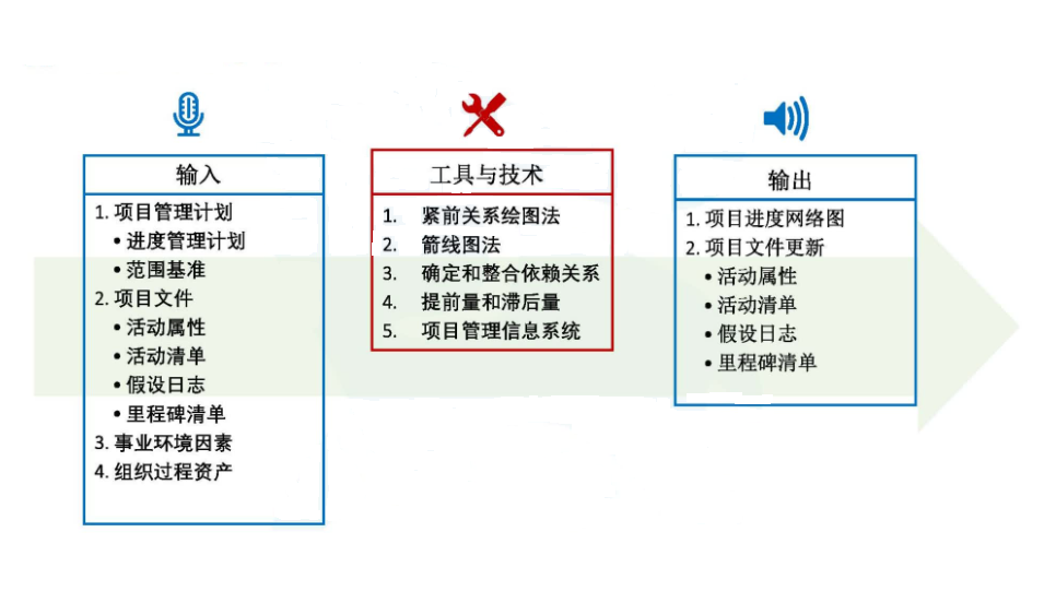 - 假设情景分析基于项目风险管理过程的输出,对各种不同的情景进行评估促使进度模型符合项目管理计划和批准的基准