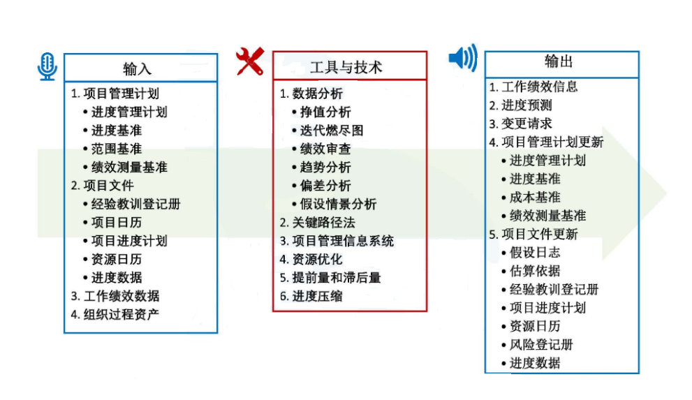 - 进度基准:把进度基准与实际结果相比,判断是否需要进行变更或采取纠正、预防措施