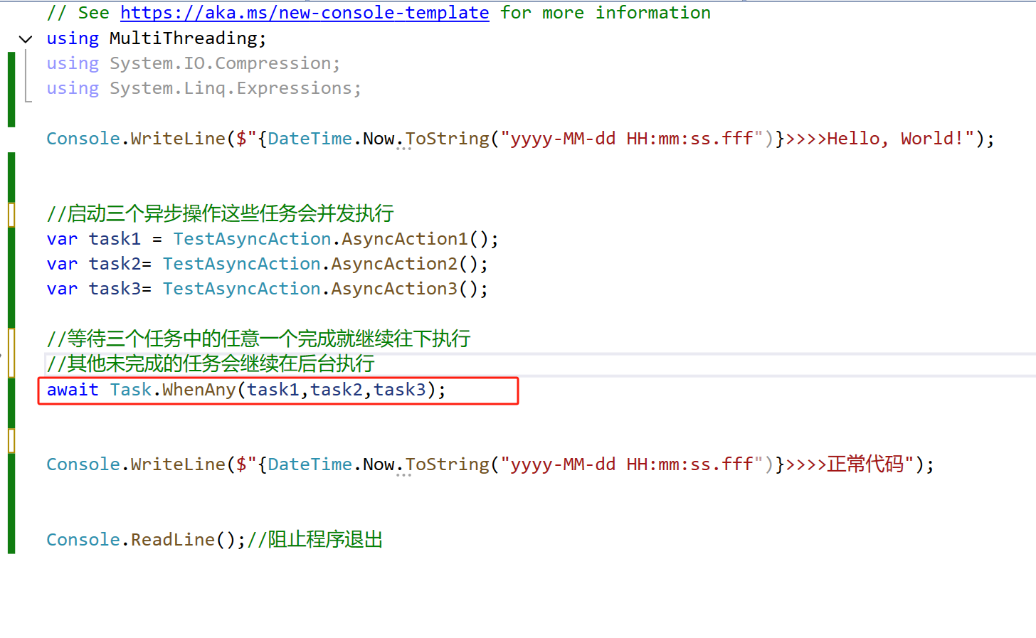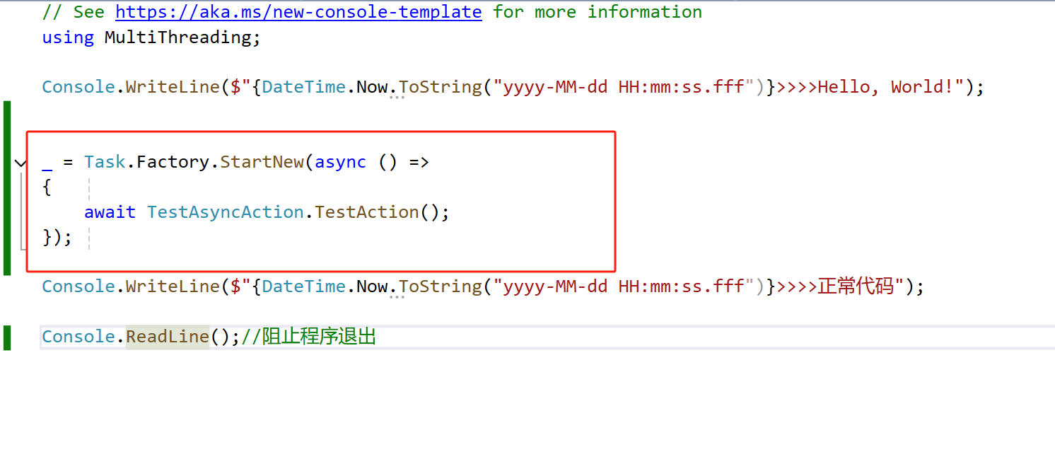 Console.WriteLine(">>>>正常代码");
