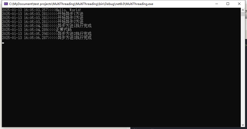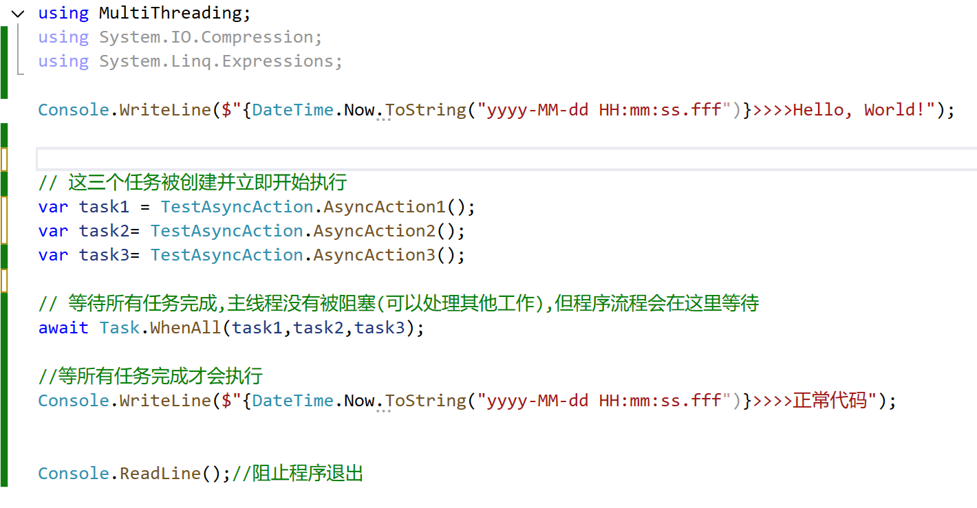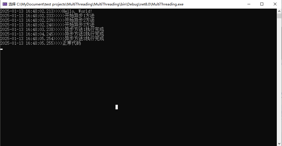 4、如果想等待新开线程执行完再继续执行后续的代码,可以使用如下方式:使用 await 等待整个操作完成