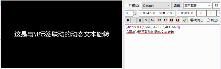 参数<特效标签>是指可用\t动画化的ASS标签。