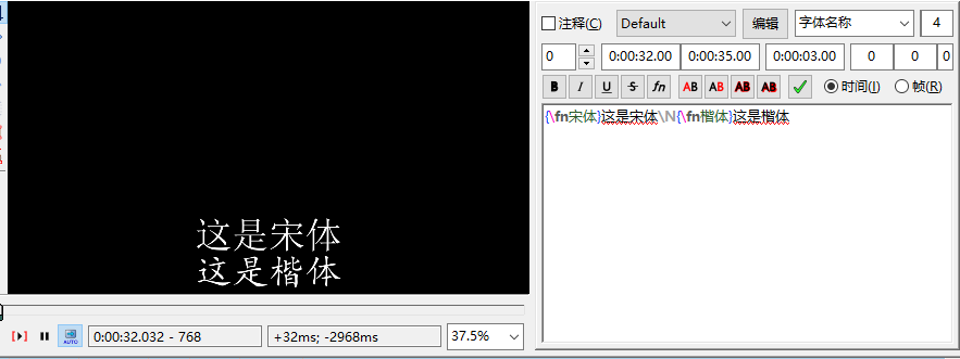 - 设置标签后字体名称,\fn和字体名称之间不能有空格或其他符号。