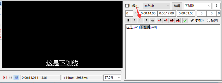 - 打开\u1或关闭\u0 下划线。在字幕编辑栏选择斜体按钮也可以使用。