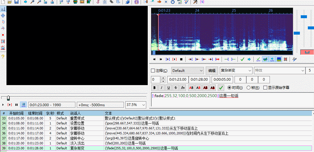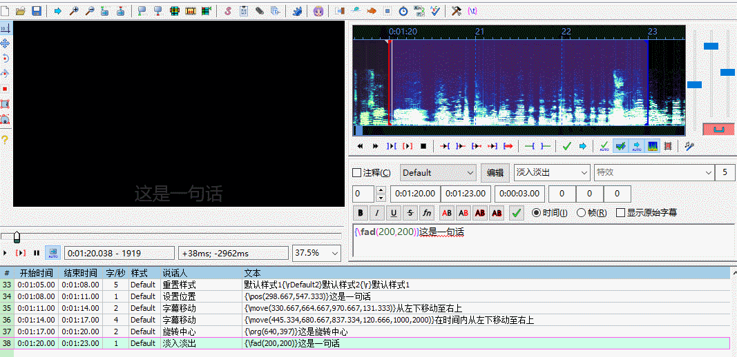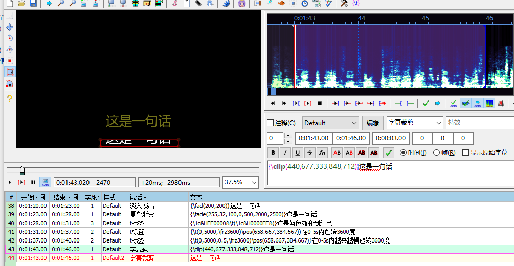 特效标签分两类,一种是定义整行的属性,例如\pos和\move, \clip和\iclip, \org, \fade和\fad,在一行中最多出现一次,每组用“和”连接的标签是互斥的。