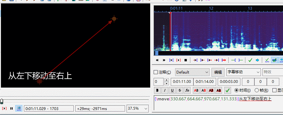 - 参数示例: \move(330.667,664.667,970.667,131.333) 在字幕持续时间内从坐标330.667,664.667移动至970.667,131.333