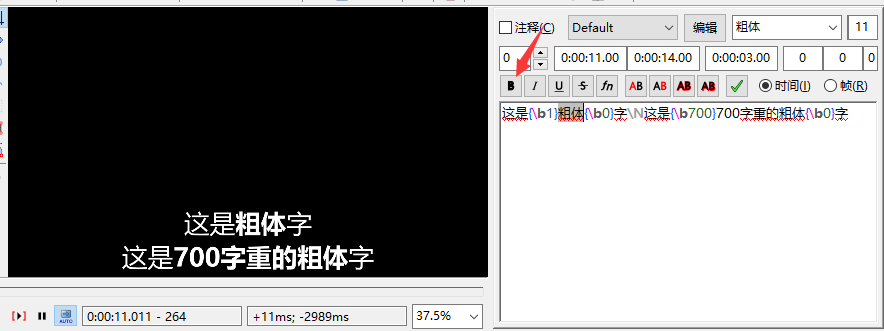 - 打开\b1或关闭\b0 粗体。在字幕编辑栏选择斜体按钮也可以使用。