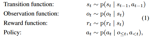 - 假定了环境是部分可观测马尔可夫决策过程 (POMDP),世界模型就是在学习这个POMDP.
