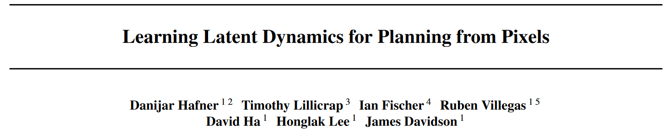 Learning Latent Dynamics for Planning from Pixels (2019)