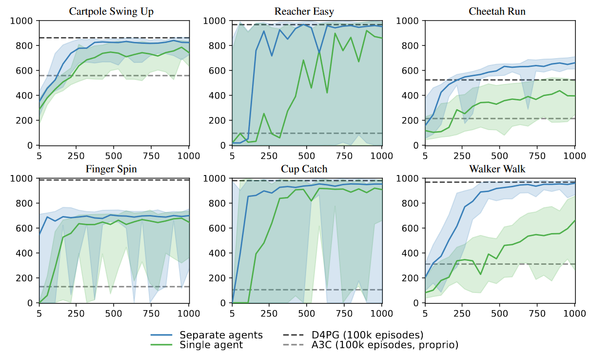 - PlaNet的分数总体不如D4PG,但是大部分任务相差不多。