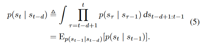 # o : -X--X--X--X--X- 设置了初始的隐状态是None,所以不考虑0时刻的obs