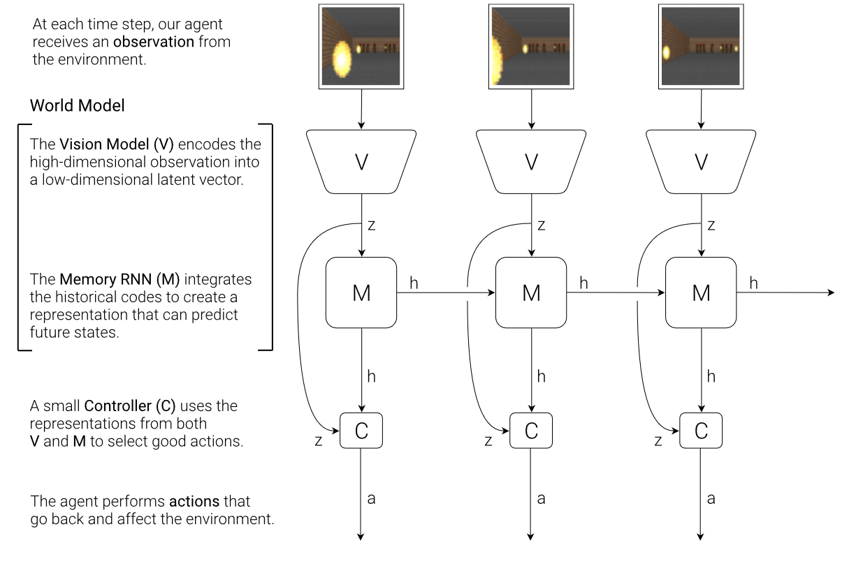 世界模型主要由两个模块组成:视觉模块、记忆模块。