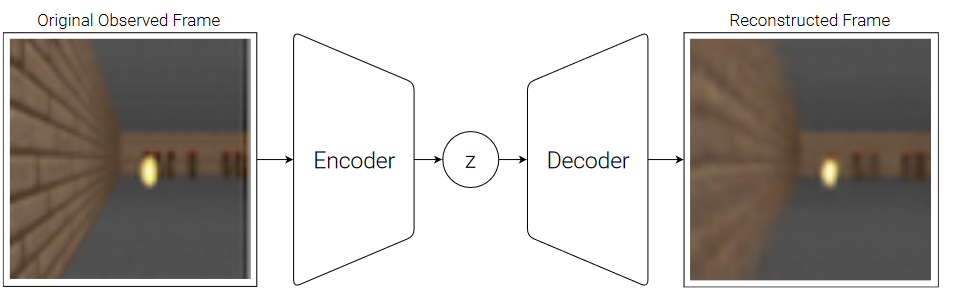 REMARK:训练成功之后,模型实际上成为了游戏的”模拟器”,学习到了游戏逻辑 (角色中弹后会重新开始)、敌人行为 (按一定时间间隔发射子弹)、物理机制 (子弹飞行速度)等。