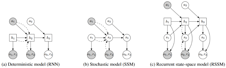 - 提出基于确定性和随机性结合的状态空间模型 (RSSM),而不是仅有确定性状态的RNN和仅有随机性状态的SSM.