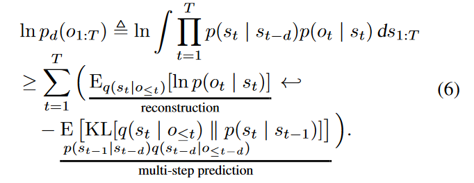 - 给出了适用于多步预测的变分推断方法 —— latent overshooting.