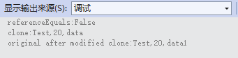 1 public static void TestRecordWith() 2 { 3 var original = new RecordModel() { Name = "Test", Age = 20, Mode = new TestMode() { Data = "data" } }; 4 var clone = original with { }; 5 Debug.WriteLine($"referenceEquals:{ReferenceEquals(original, clone)}"); 6 Debug.WriteLine($"clone:{clone.Name},{clone.Age},{clone.Mode.Data}"); 7 clone.Name = "Test1"; 8 clone.Age = 21; 9 clone.Mode.Data = "data1"; 10 Debug.WriteLine($"original after modified clone:{original.Name},{original.Age},{original.Mode.Data}"); 11 }